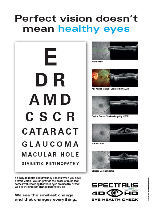 The SPECTRALIS 4D HD Eye Health Check Patient Mailer is designed primarily for direct mail.