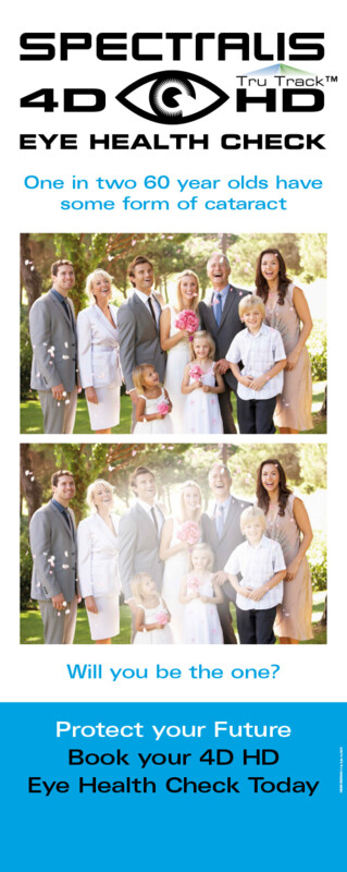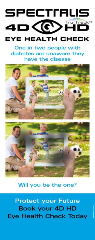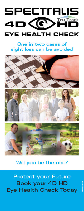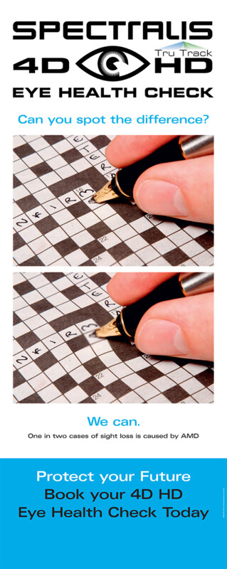 The roll-up banners can be used to create an eye-catching window display, a talking point for your front of house staff, interest in the waiting room or a discussion in the consulting room. They convey a simple eye health message using powerful images that demonstrate the effect of sight threatening diseases.